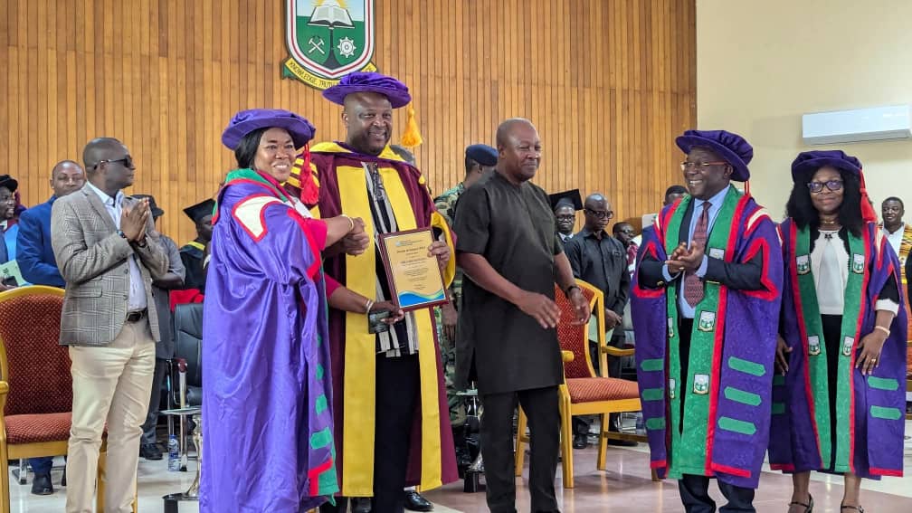The honour was the highlight of UMaT’s 18th Special Congregation Ceremony, which was attended by President John Dramani Mahama, who is also the awardee’s brother, as well as former President John Agyekum Kufuor, the Chancellor of the University.